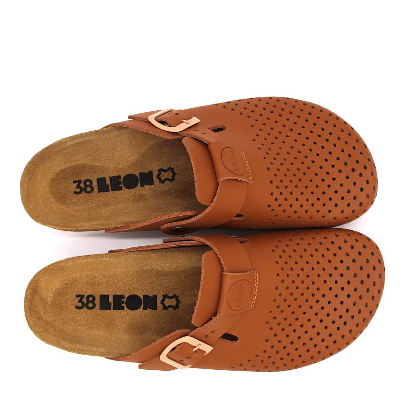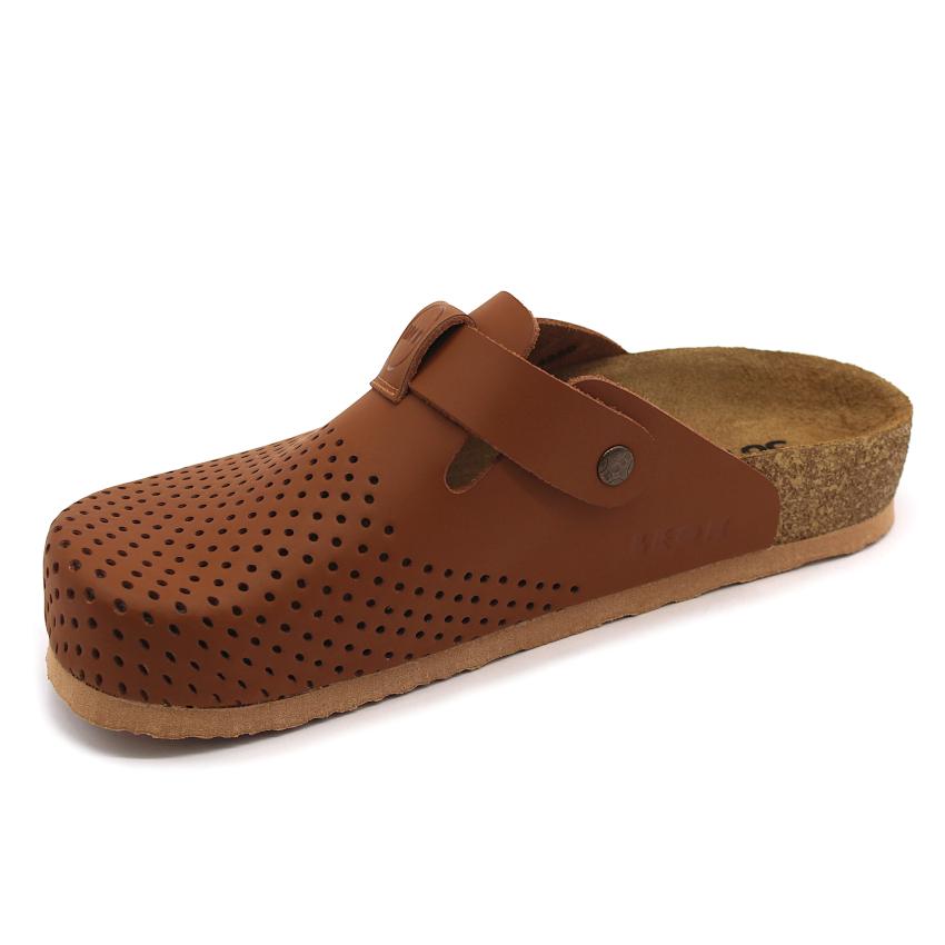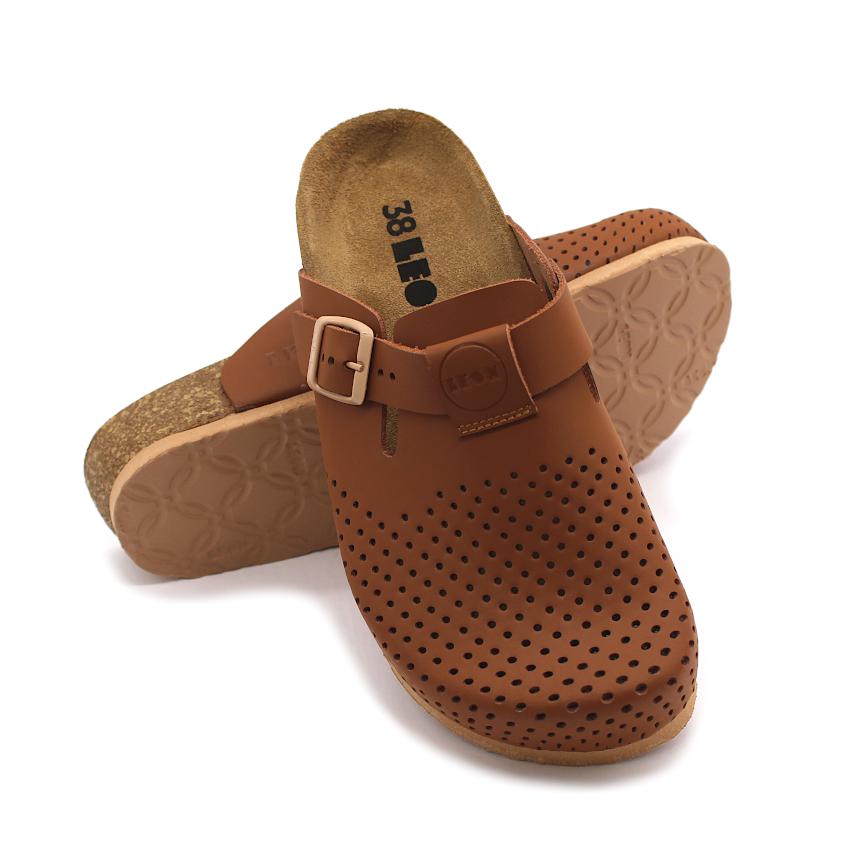 Női bőr klumpa, Oldalt csat található, amellyel szabályozni lehet a bőséget. A talp anatómiai kialakítású parafa, puha velúrbőr talpbetéttel és csúszásmentes habszivacs alsó résszel. Ajánlott minden napos otthoni vagy utcai használatra, könnyű nyári sétára ( több órás gyaloglás után sem fárad el a láb ).