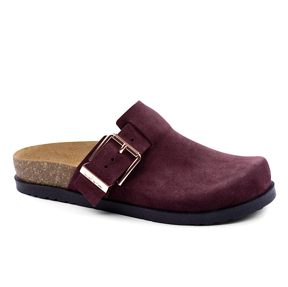 Női bőr klumpa, mely felső része minőségi puha velúr bőrből készült, és bősége csattal állítható! A talpbetét anatómiai kialakítású, amely támogatja a helyes testtartást! A talp poliuretán anyagból készült, és csúszásgátló korongokkal rendelkezik!