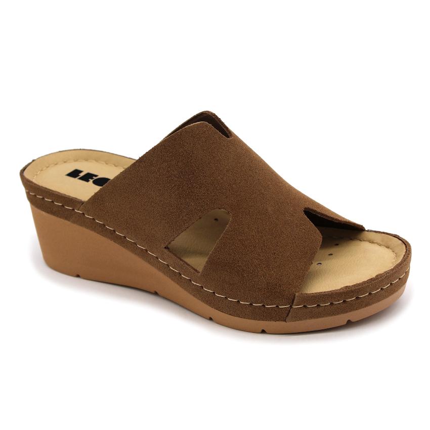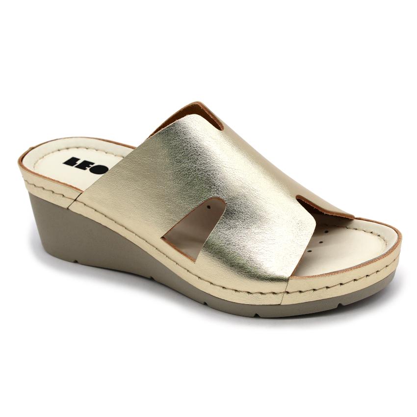 Női bőr nyitott papucs, műanyag csúszásgátlós talppal. A talpbetét puha zselés, bőr. Ajánlott: mindennapos használatra, otthonra és utcai viseletre.