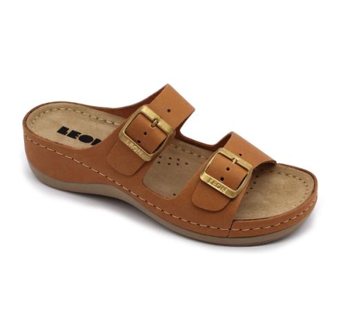 Női bőr nyitott papucs, műanyag csúszásgátlós talppal. A felső szíjban gumi betét van, így az szükség szerint tágul. A talpbetét puha zselés, bőr. Ajánlott: mindennapos utcai használatra, otthonra vagy munkahelyre ( több órás, szaladgálós munka alatt sem fárad el a láb ).