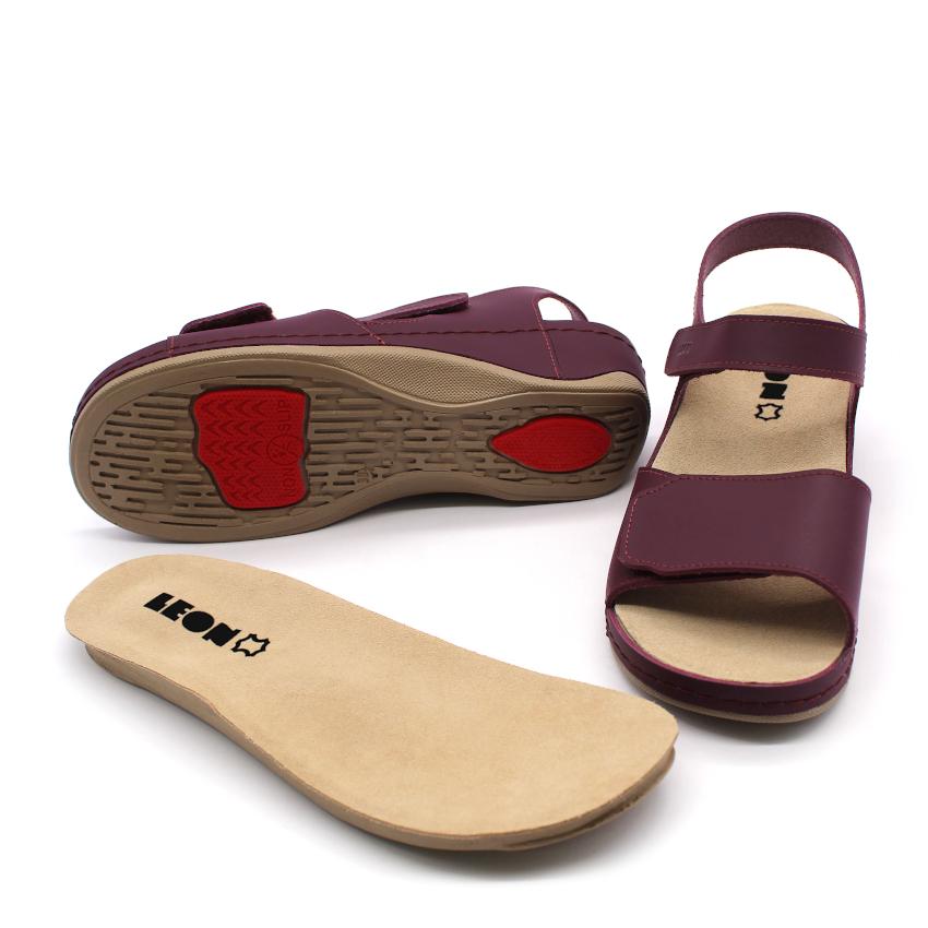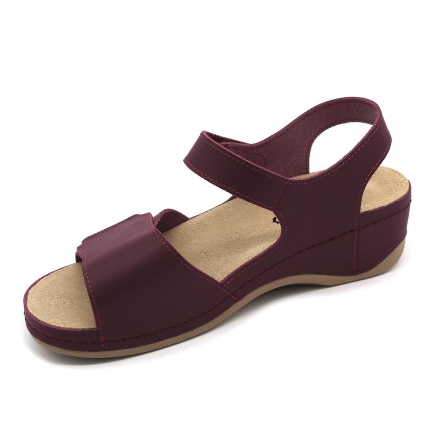 Női nappabőr ( nagyon puha felsőrész ) szandál, műanyag csúszásmentes talppal. A felsőrész mindkét pántja tépőzárral szabályozható. Az anatómiai kialakítású, puha bőr talpbetét kivehető, így bármikor tisztítható és cserélhető. Ajánlott: mindennapos utcai használatra és otthonra.