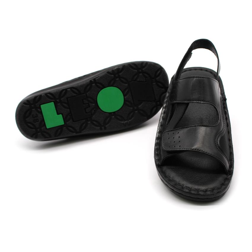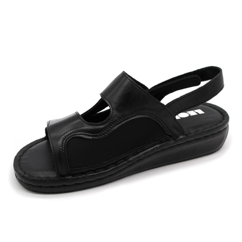Női bőr szandál, műanyag csúszásgátlós talppal. A talpbetét puha, zselés bőr. A felsőrész belső oldalán elasztikus textil betét található, melynek köszönhetően nagyon kényelmes viseletet biztosít, kisebb fokú lábdeformitás ( bütyök ) esetén is. Mind a két szíj tépőzárral szabályozható. Ez a modell szélesebb illetve magasabb lábfejjel rendelkező hölgyeknek ajánlott mindennapos utcai használatra, otthonra.