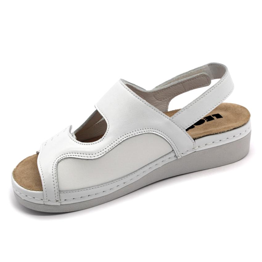 Dekoratív női nappabőr ( nagyon puha felsőrész ) szandál, műanyag csúszásmentes talppal. A felsőrész bősége tépőzárral szabályozható. Az anatómiai kialakítású, puha bőr talpbetét kivehető, így bármikor tisztítható és cserélhető. Ajánlott: mindennapos utcai használatra és otthonra.
