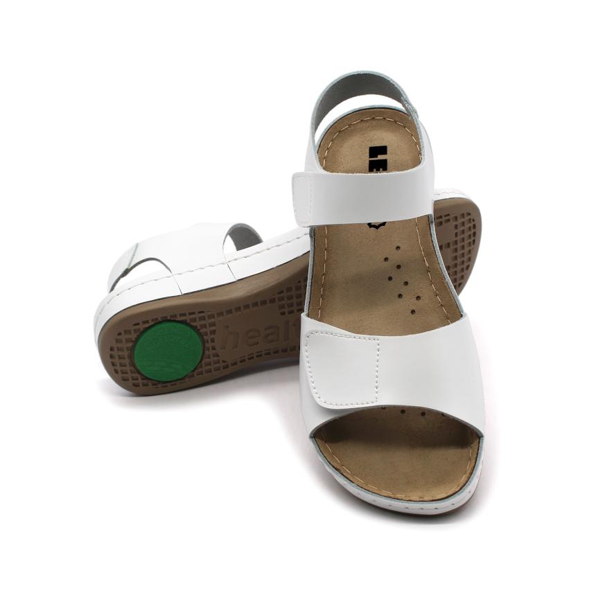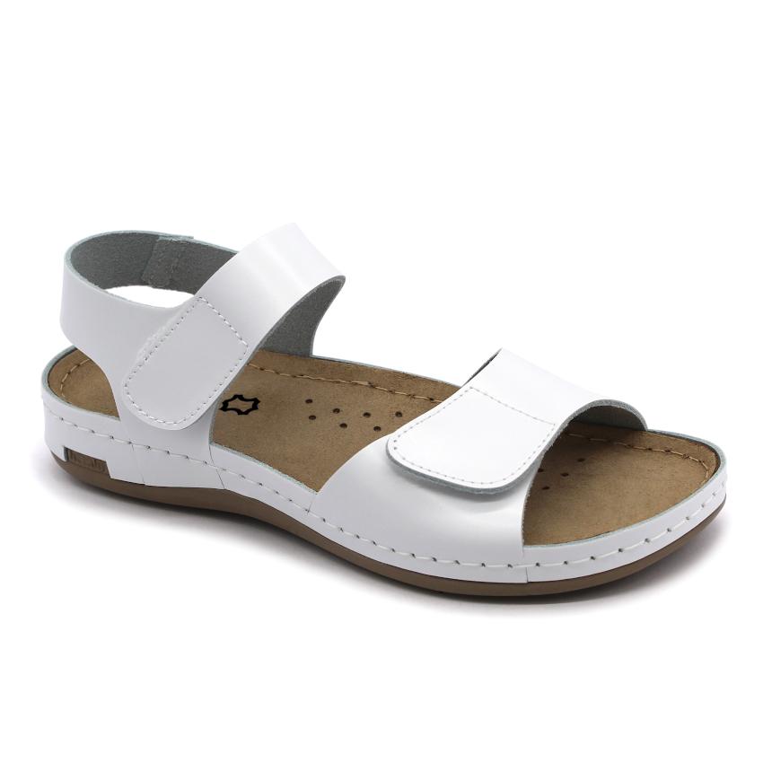 Női bőr szandál, műanyag csúszásgátlós talppal. Mind a két szíj tépőzárral szabályozható. A talpbetét puha zselés, bőr. Ajánlott mindennapos utcai használatra vagy egy könnyű nyári sétára ( több órás gyaloglás után sem fárad el a láb ).